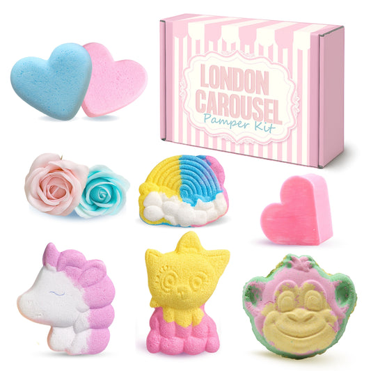 London Carousel Kids Bath Bomb Gift Set – Unicorn, Rainbow & Animal Shapes with Mini Soaps, Fun Bath Time Present for Girls & Boys