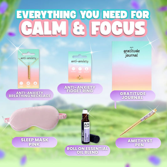 Breath & Believe Mindfulness Gift Set for Teen Girls – Anxiety Relief Necklace, Fidget Ring, Journal & Sleep Mask