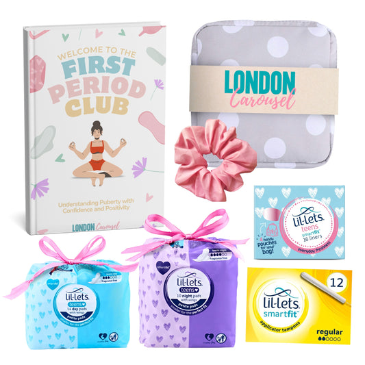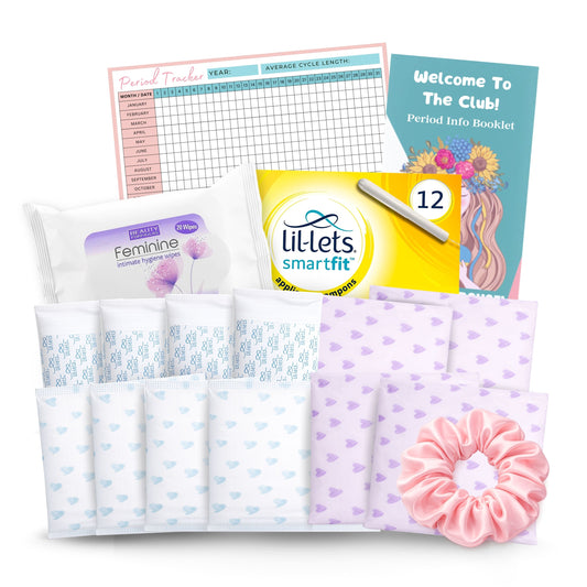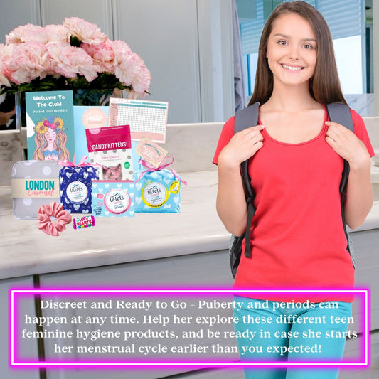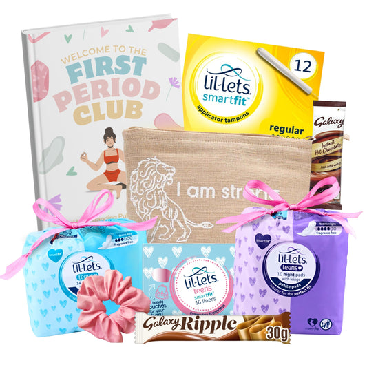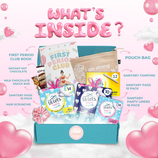 First Period Kit for Girls – First Period Club Book, Lil-Lets Teen Pads, Tampons & Sweet Treats