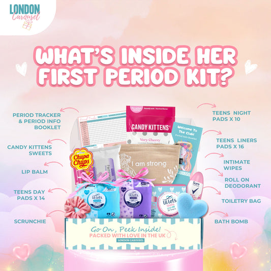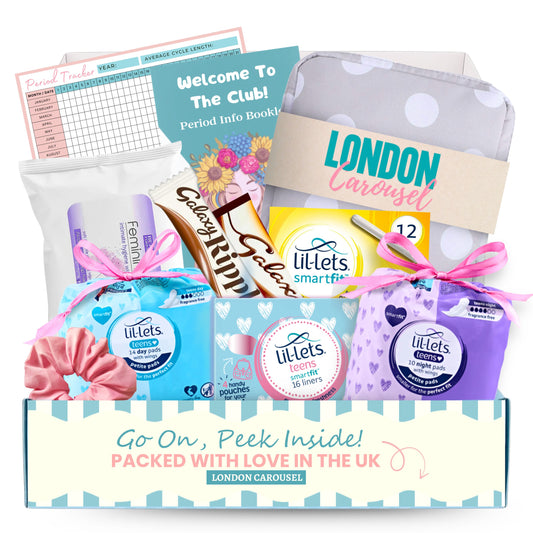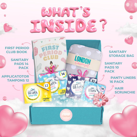 First Period Kit for Girls – First Period Club Book, Lil-Lets Teen Pads, Tampons & Sweet Treats