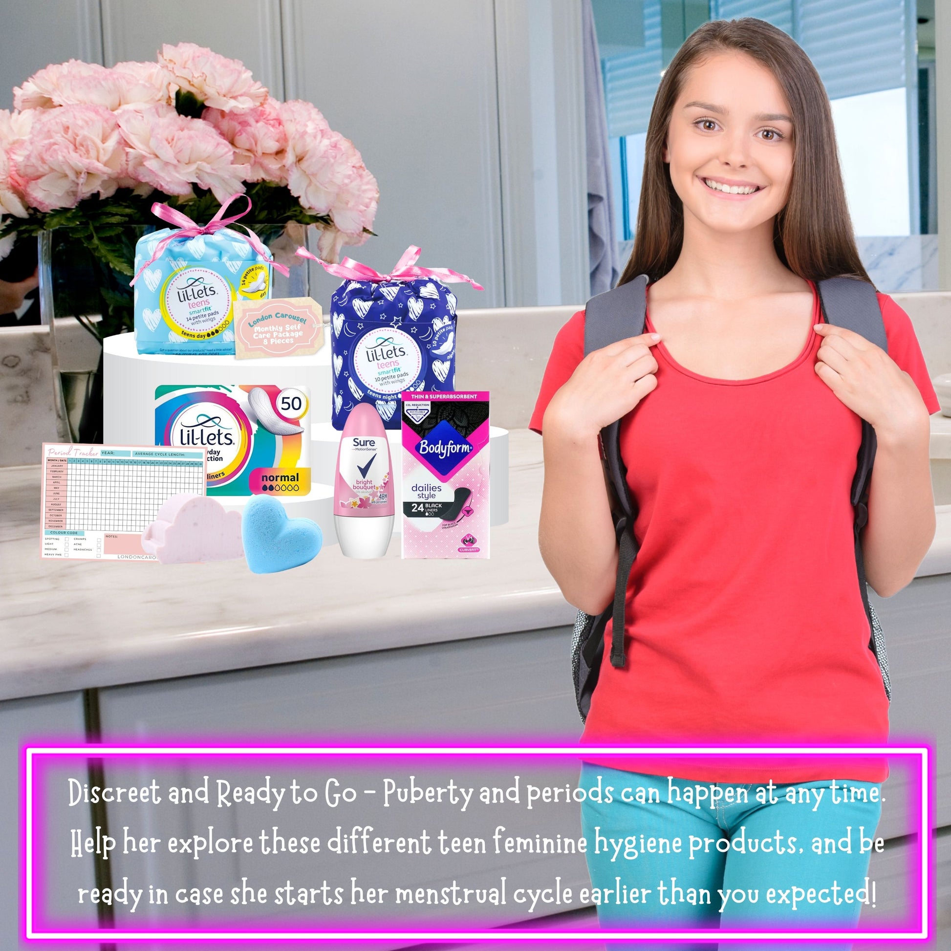 First Period Kit for Girls - Lil Lets Sanitary Pads, Liners, Deodorant, Bath Bomb, and Tracker